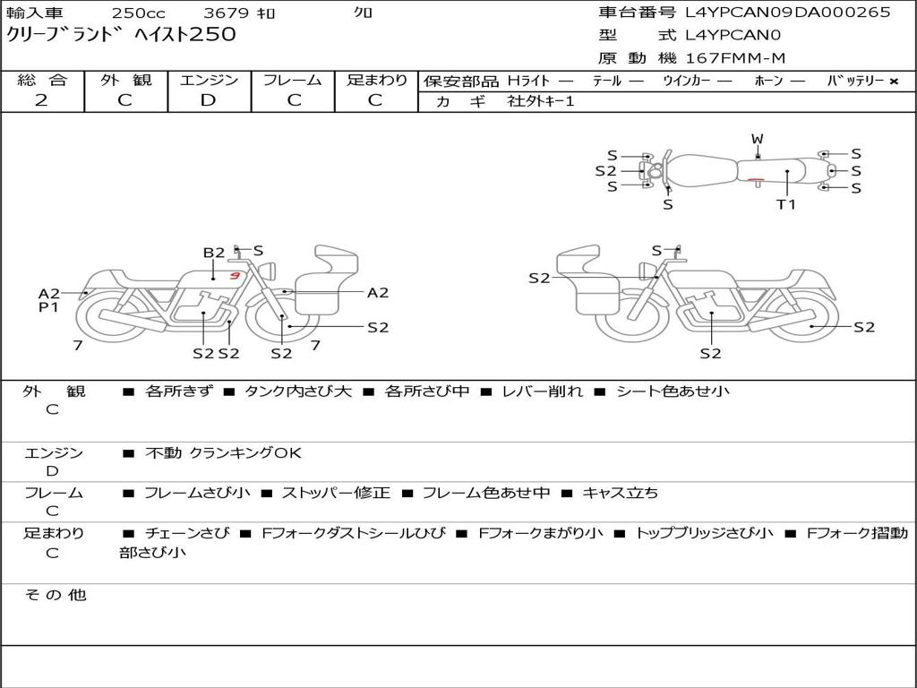 | Номер рамы / VIN | L4YPCAN09DA000265 |