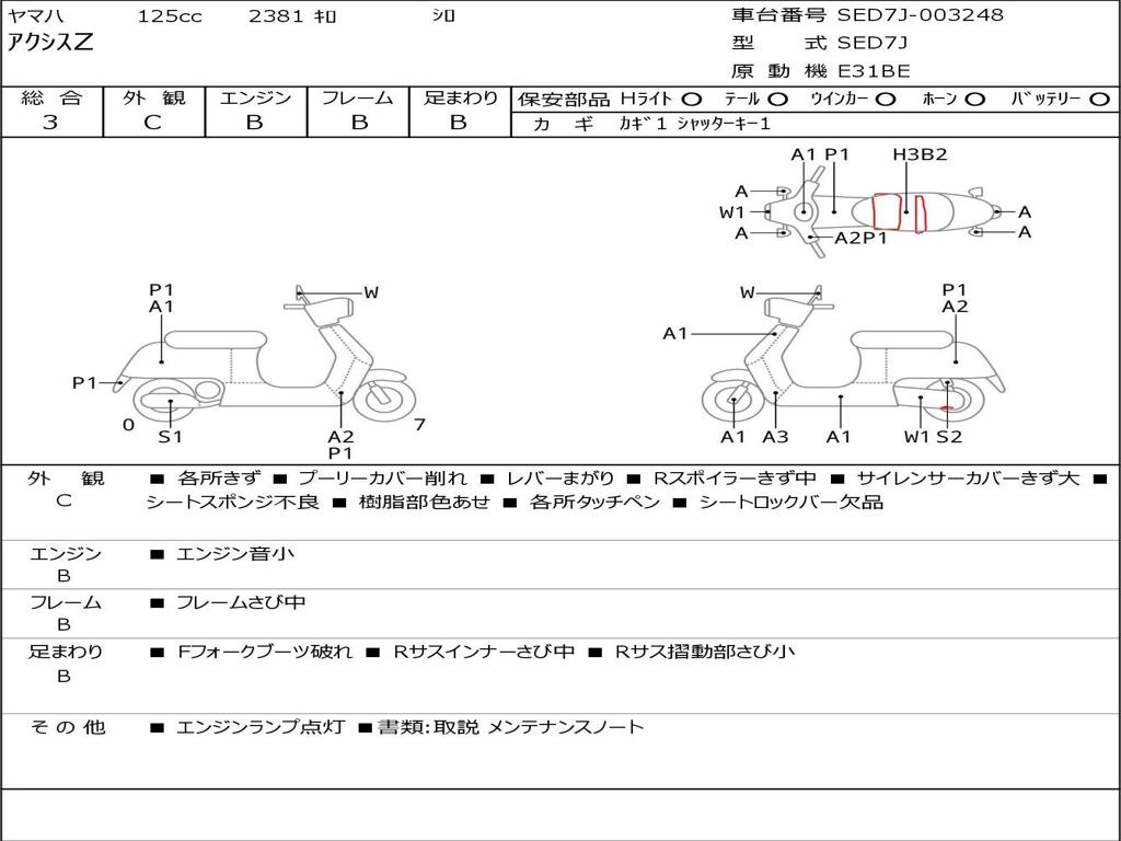 | Номер рамы / VIN | SED7J-003248 |