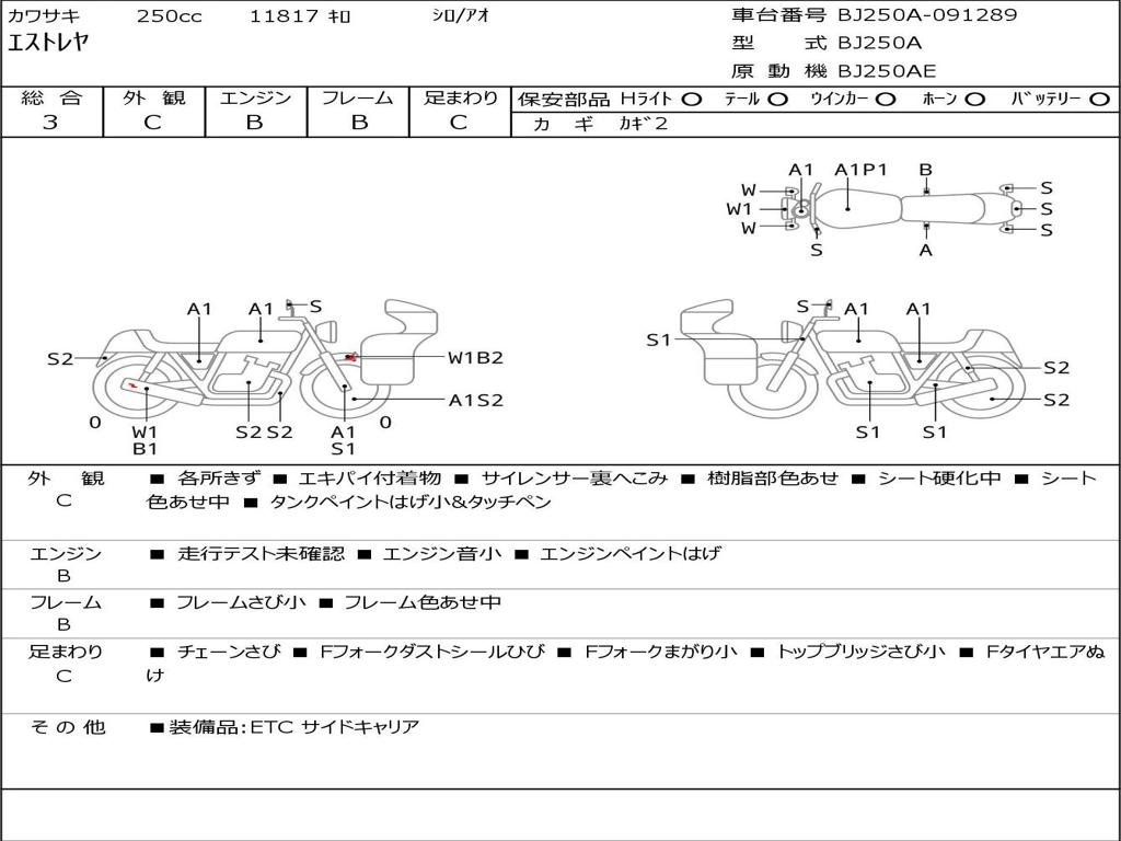 | Номер рамы / VIN | BJ250A-091289 |