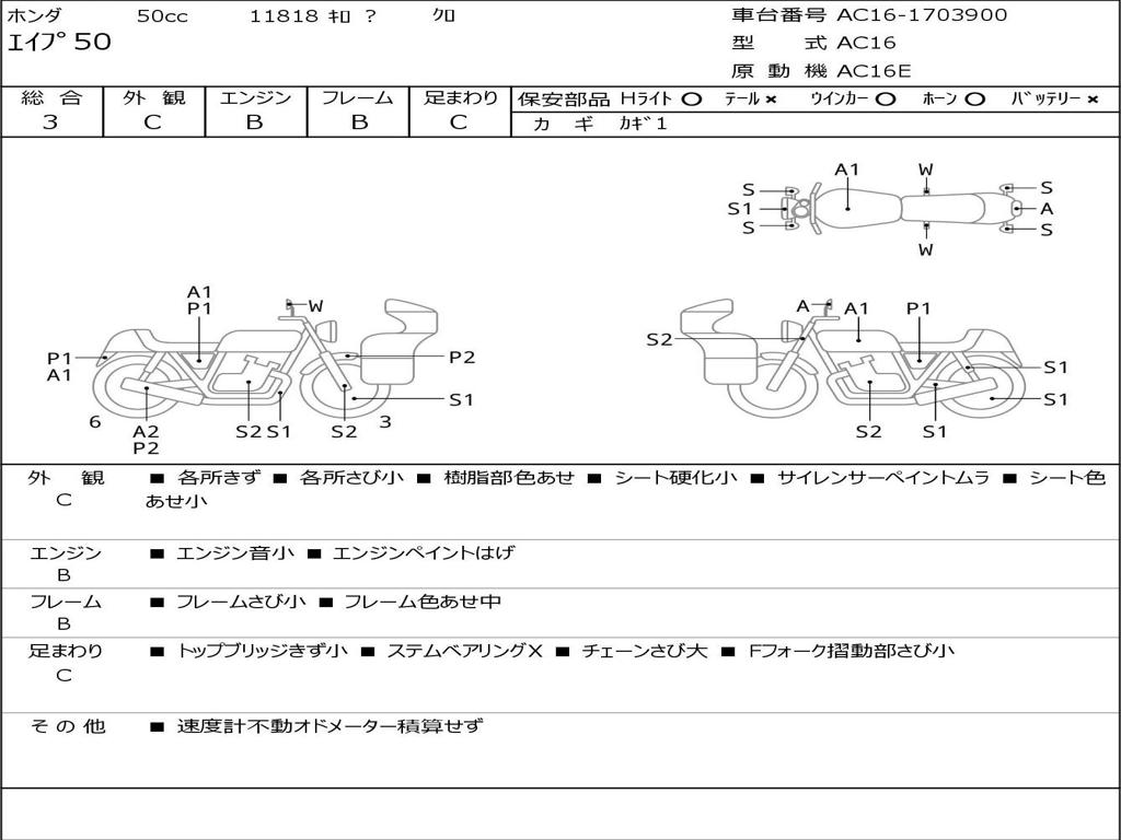 | Номер рамы / VIN | AC16-1703900 |