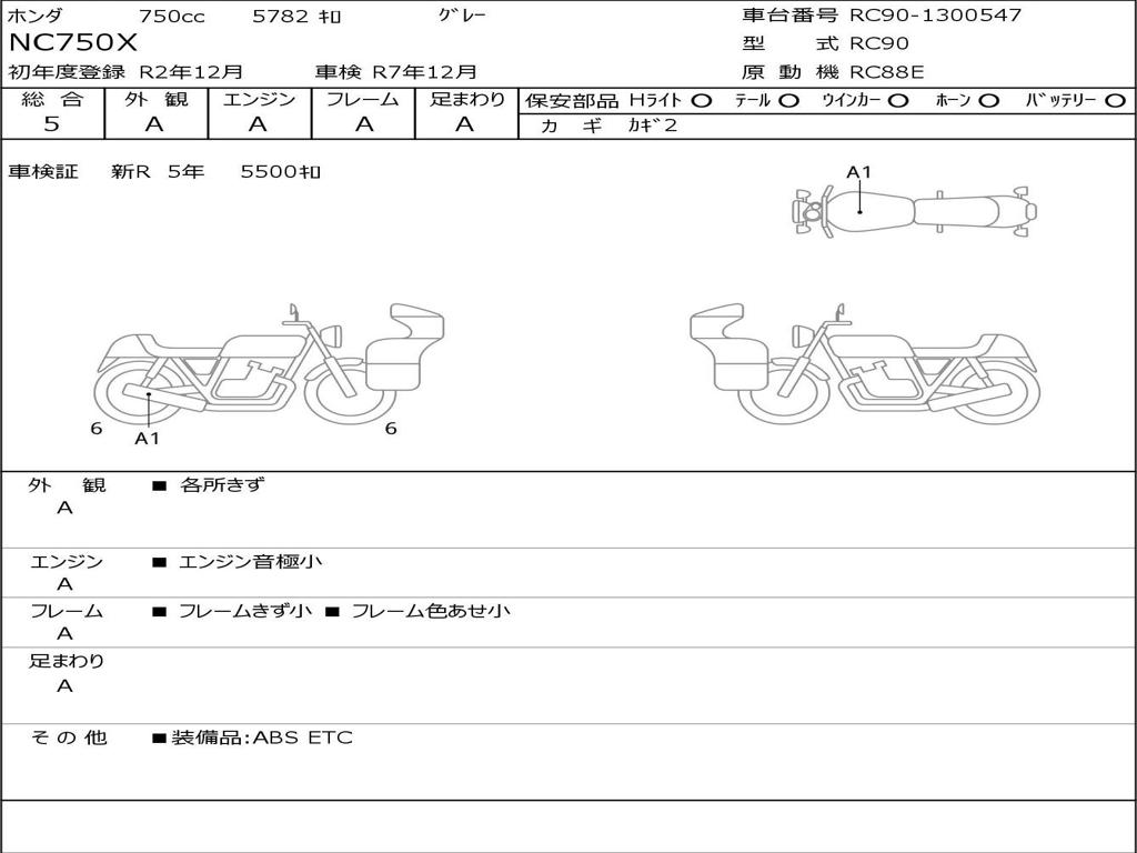 | Номер рамы / VIN | RC90-1300547 |