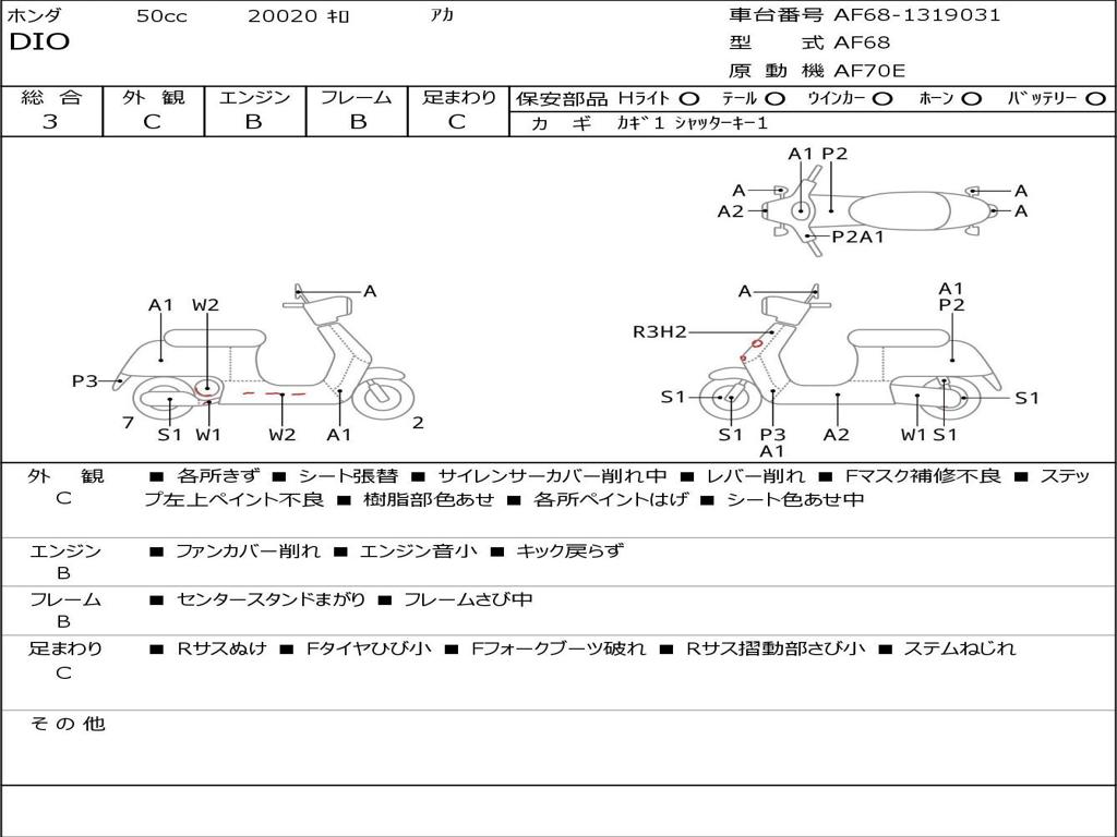 | Номер рамы / VIN | AF68-1319031 |