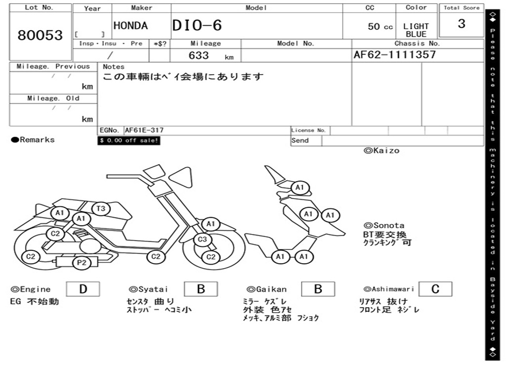 | Аукцион | ARAI BAYSIDE |