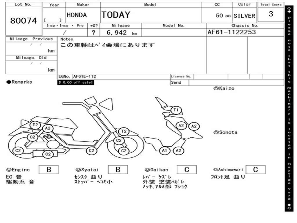 | Аукцион | ARAI BAYSIDE |