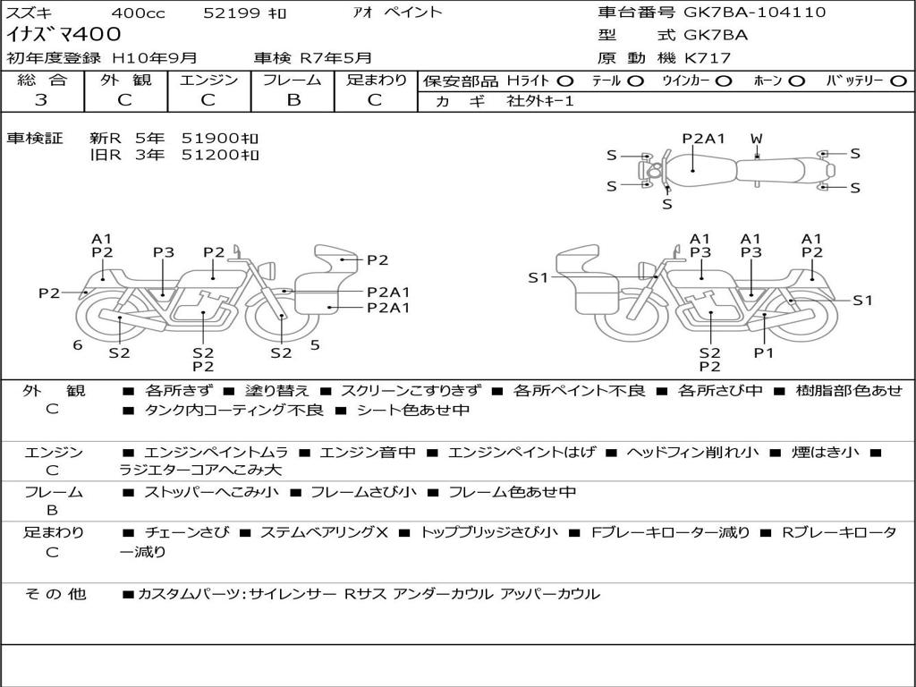 | Номер рамы / VIN | GK7BA-104110 |