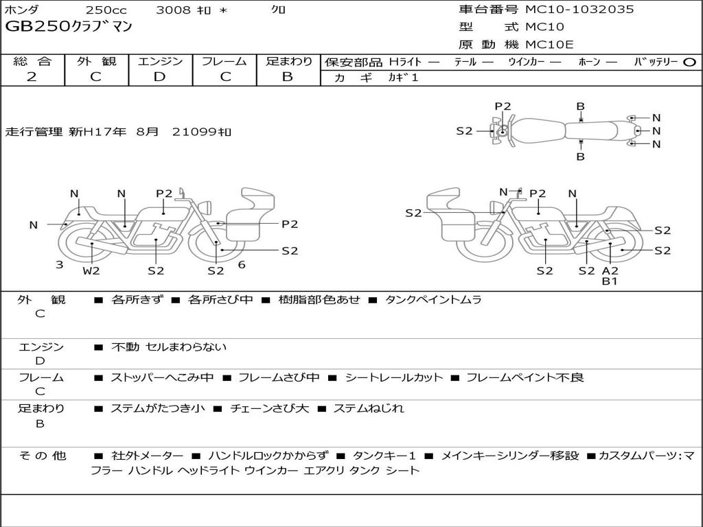 | Номер рамы / VIN | MC10-1032035 |