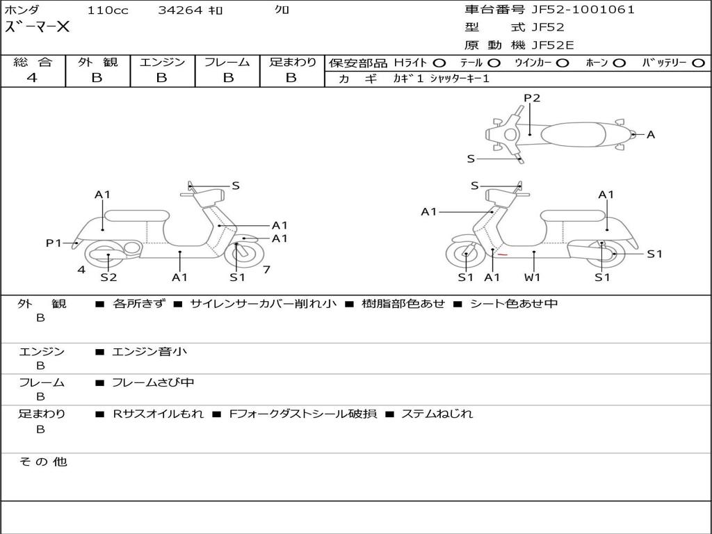 | Номер рамы / VIN | JF52-1001061 |
