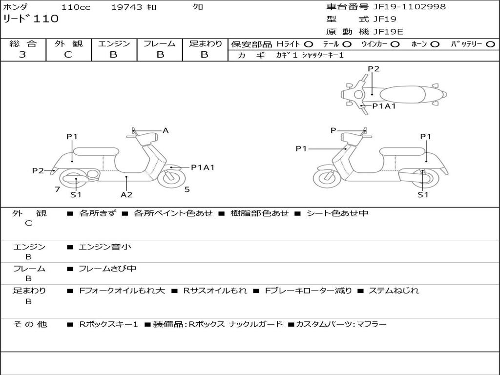 | Номер рамы / VIN | JF19-1102998 |