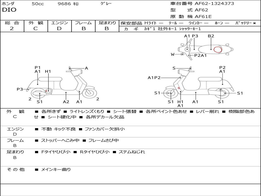 | Номер рамы / VIN | AF62-1324373 |