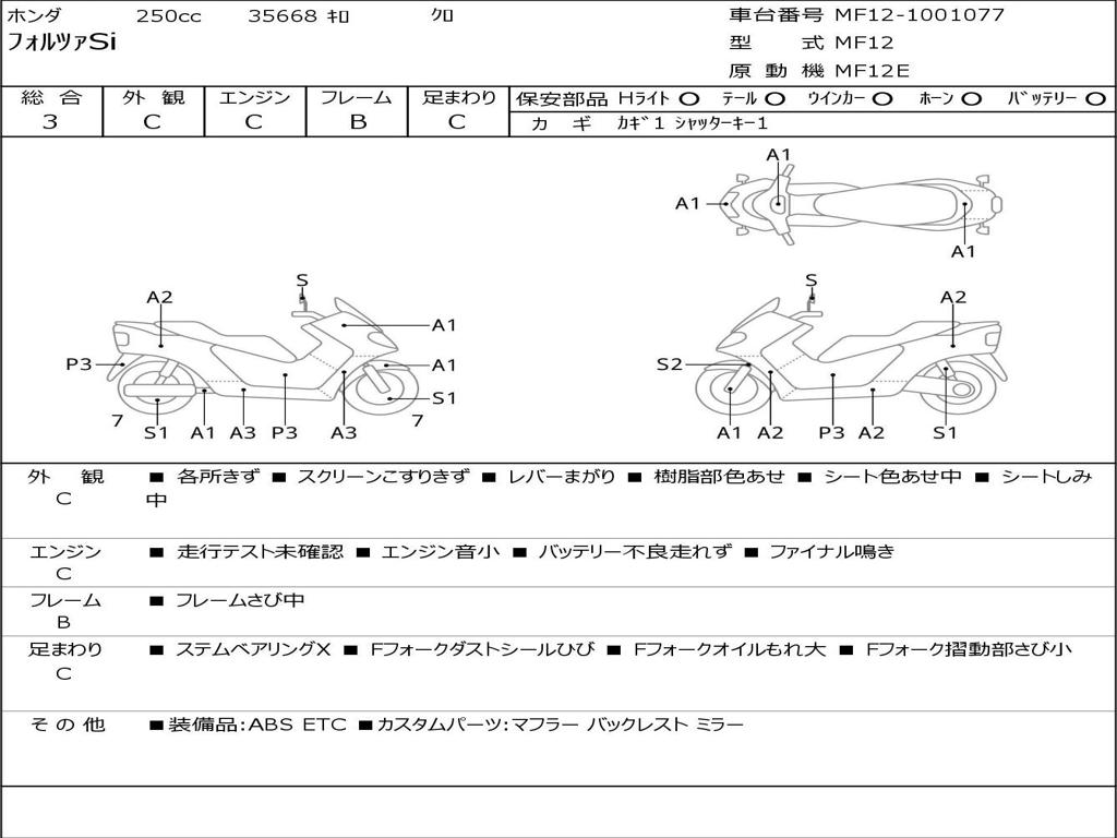 | Номер рамы / VIN | MF12-1001077 |