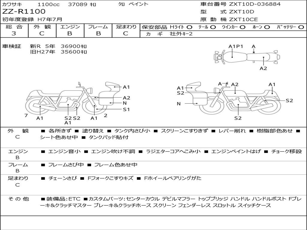 | Номер рамы / VIN | ZXT10D-036884 |