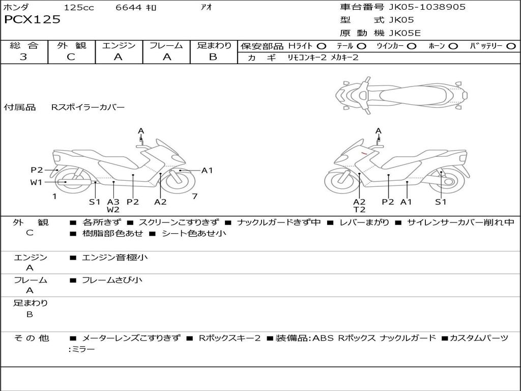 | Номер рамы / VIN | JK05-1038905 |