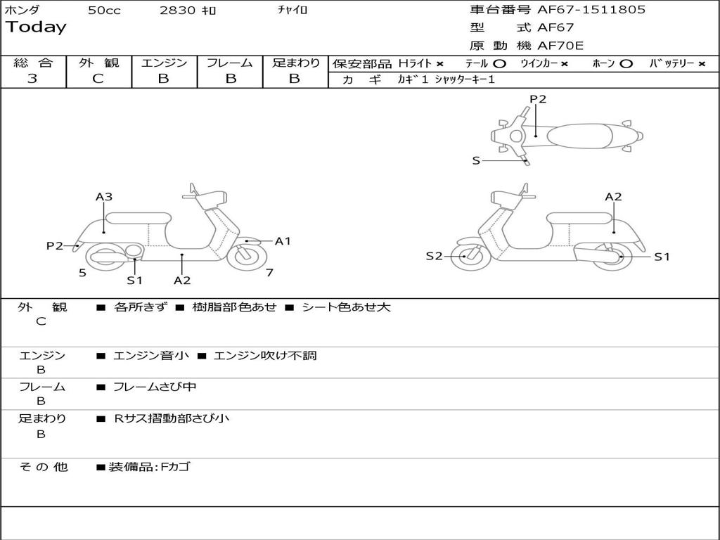 | Номер рамы / VIN | AF67-1511805 |