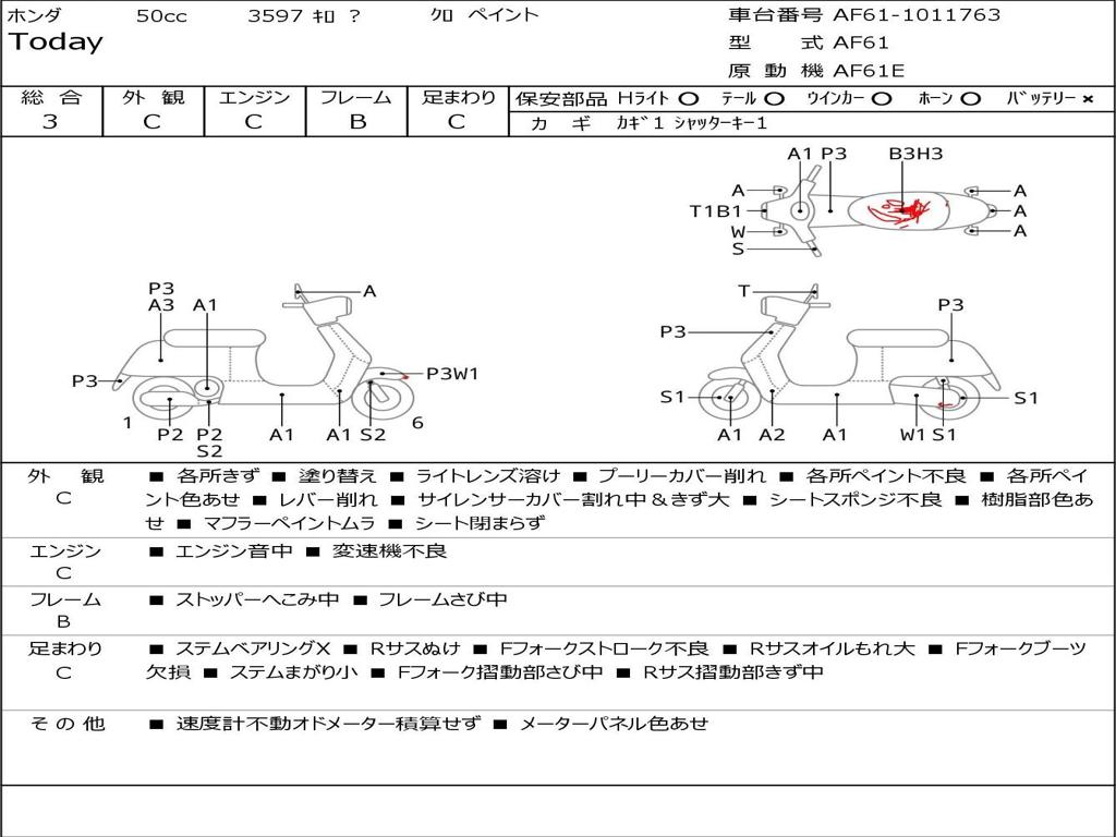 | Номер рамы / VIN | AF61-1011763 |