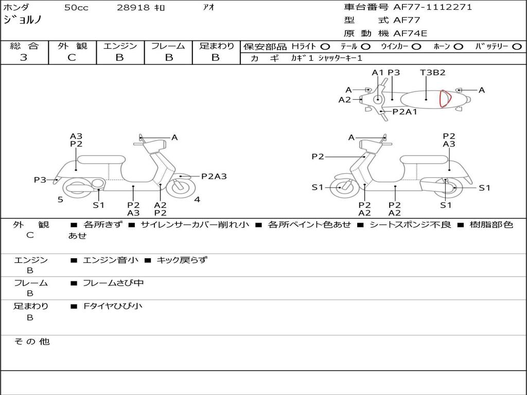 | Номер рамы / VIN | AF77-1112271 |