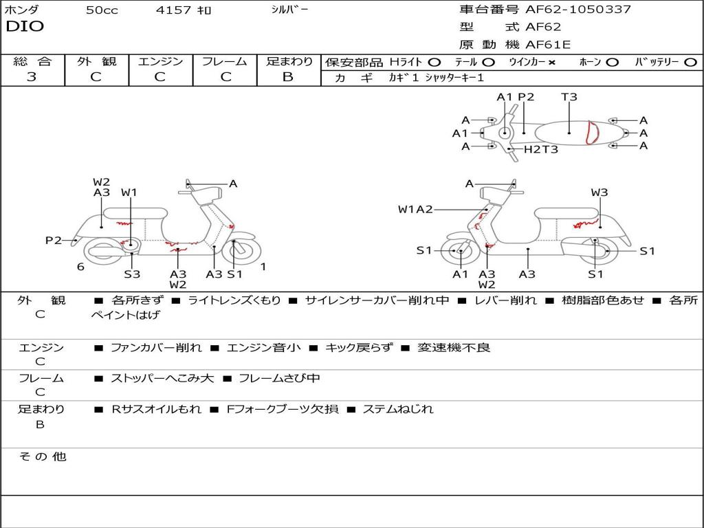 | Номер рамы / VIN | AF62-1050337 |