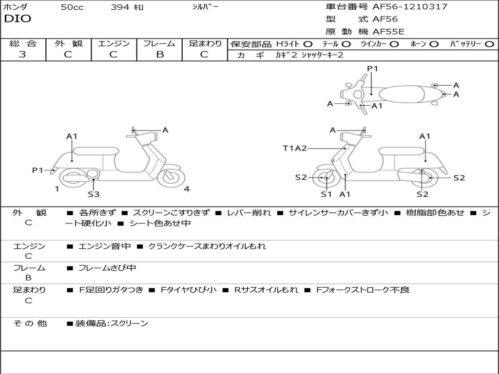 | Номер рамы / VIN | AF56-1210317 |