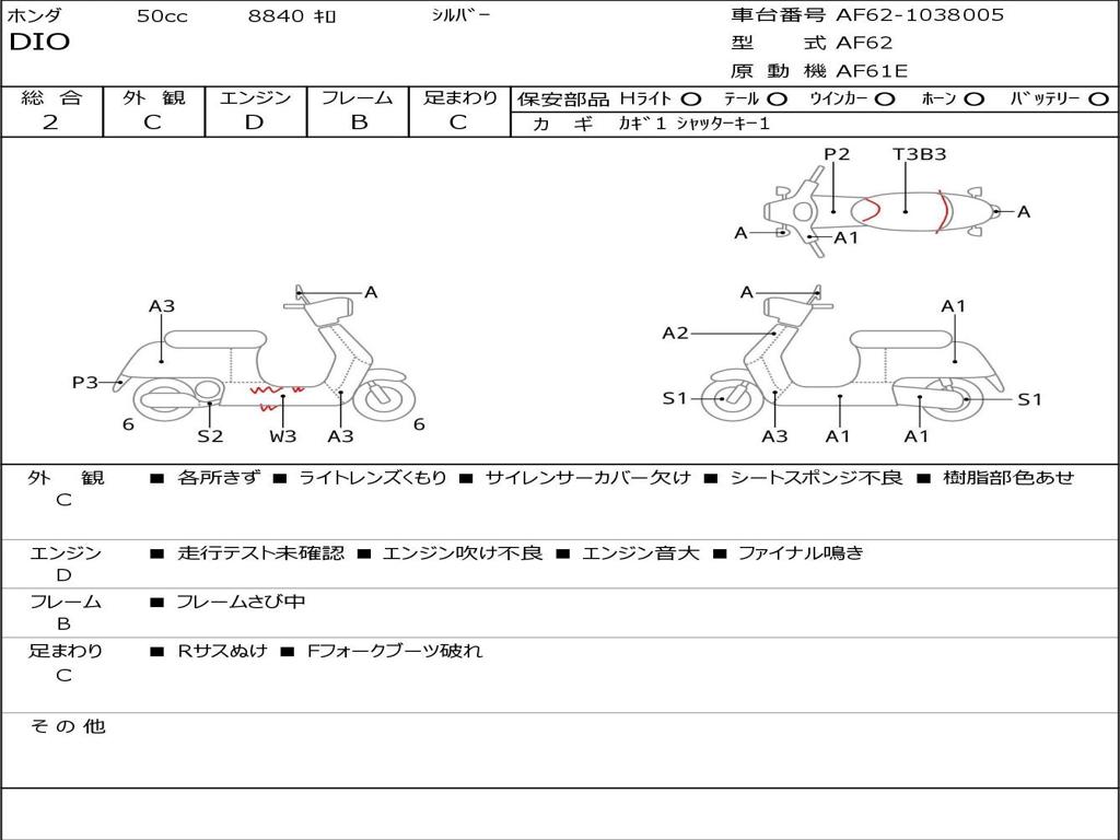 | Номер рамы / VIN | AF62-1038005 |