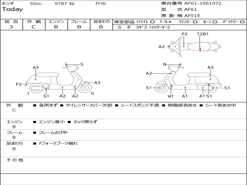 | Номер рамы / VIN | AF61-1561972 |