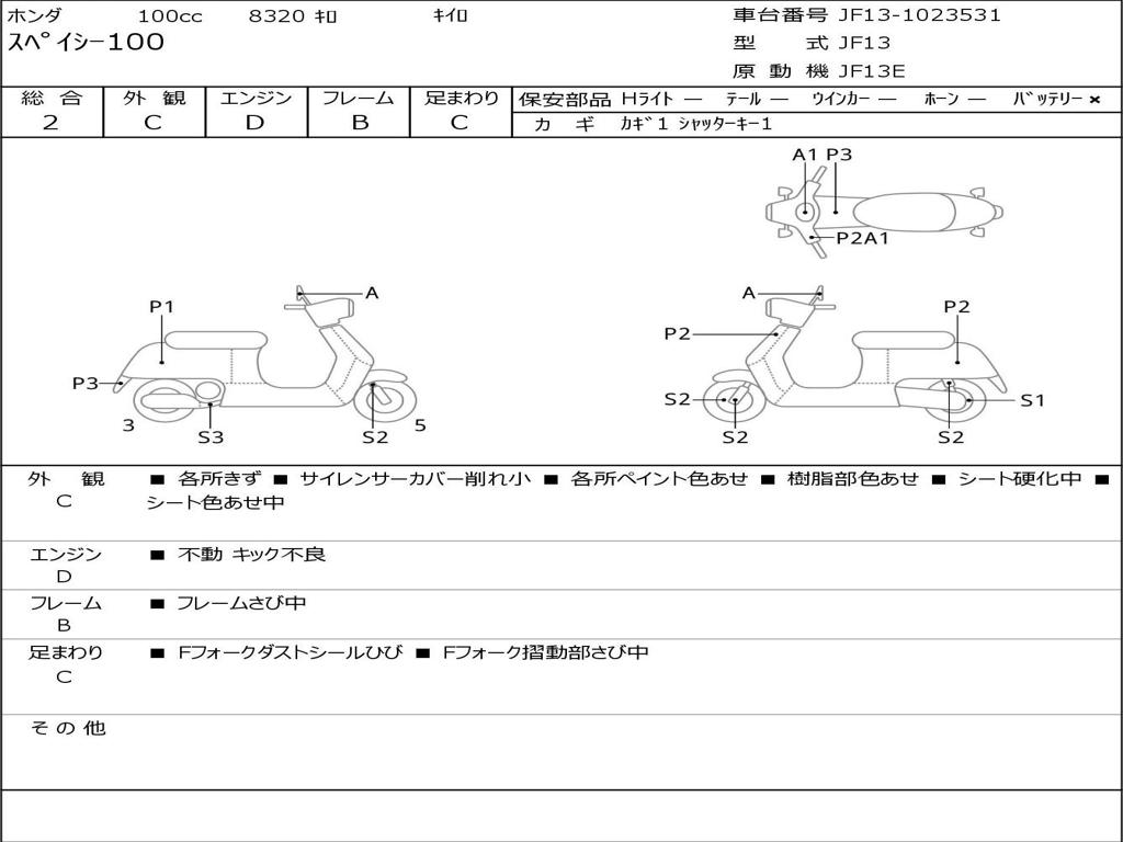 | Номер рамы / VIN | JF13-1023531 |
