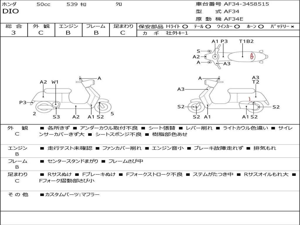 | Номер рамы / VIN | AF34-3458515 |