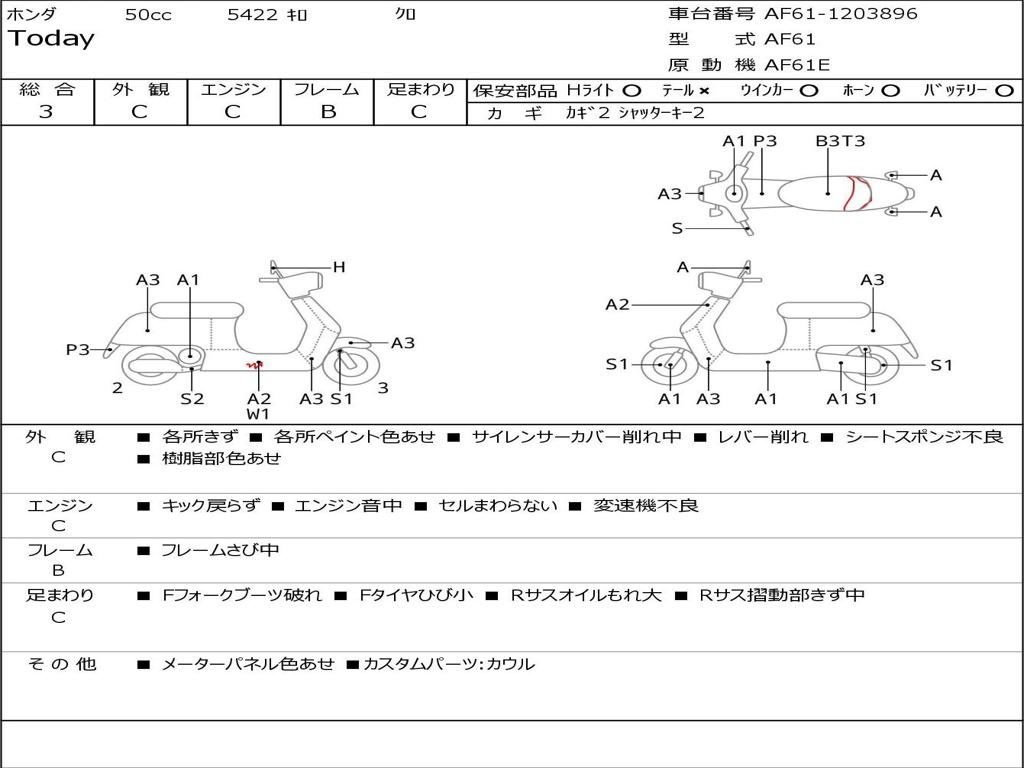 | Номер рамы / VIN | AF61-1203896 |