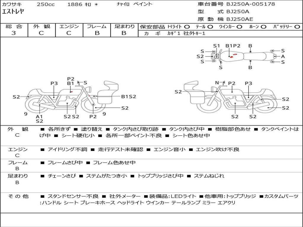 | Номер рамы / VIN | BJ250A-005178 |