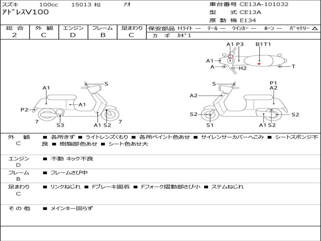 | Номер рамы / VIN | CE13A-101032 |