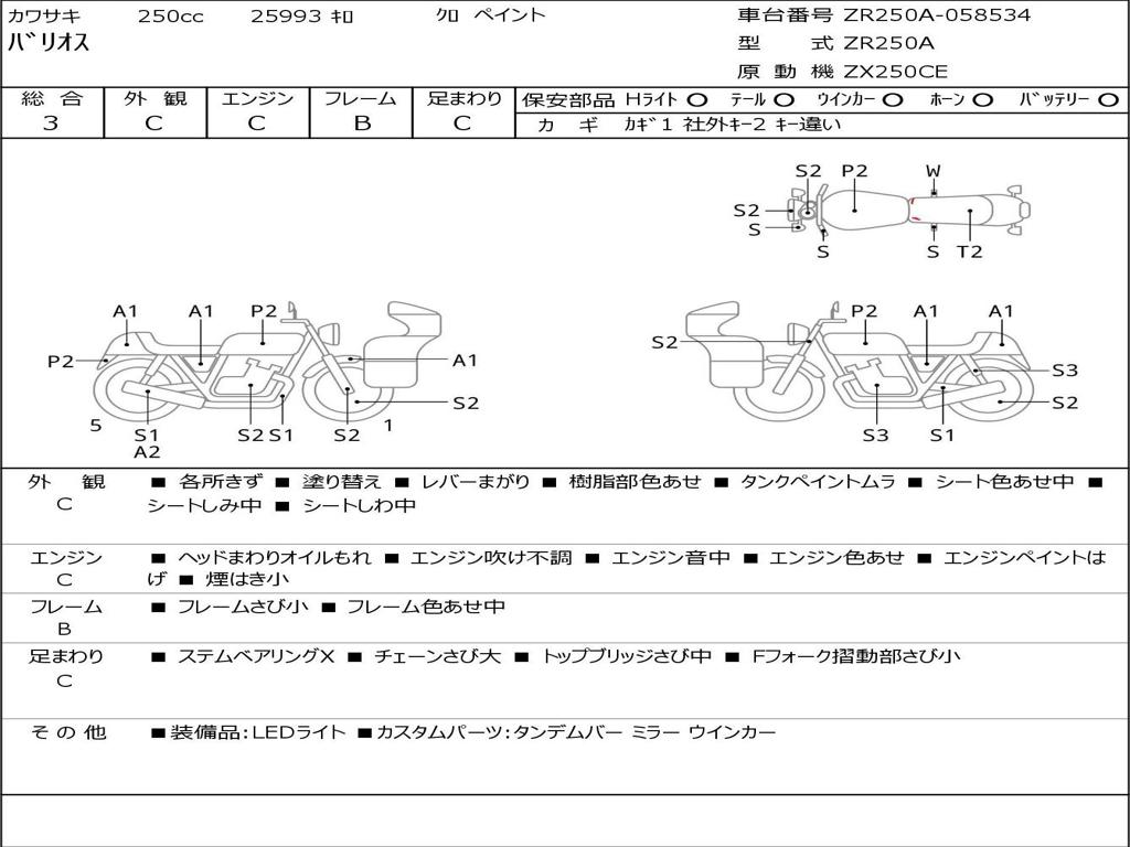 | Номер рамы / VIN | ZR250A-058534 |