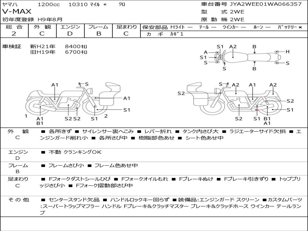 | Номер рамы / VIN | JYA2WEE01WA066357 |