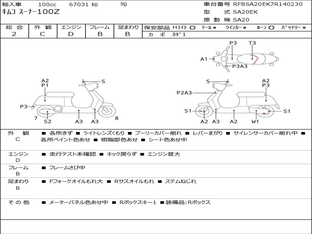 | Номер рамы / VIN | RFBSA20EK7R140230 |