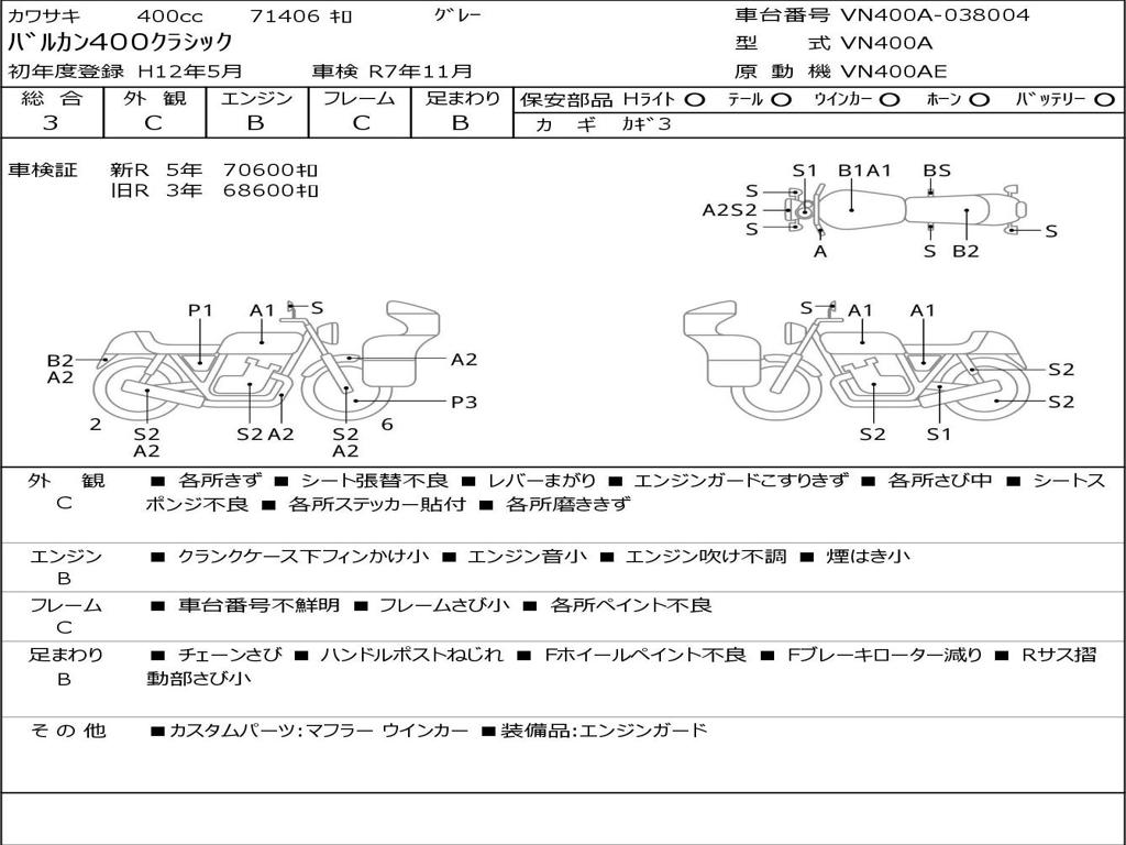 | Номер рамы / VIN | VN400A-038004 |