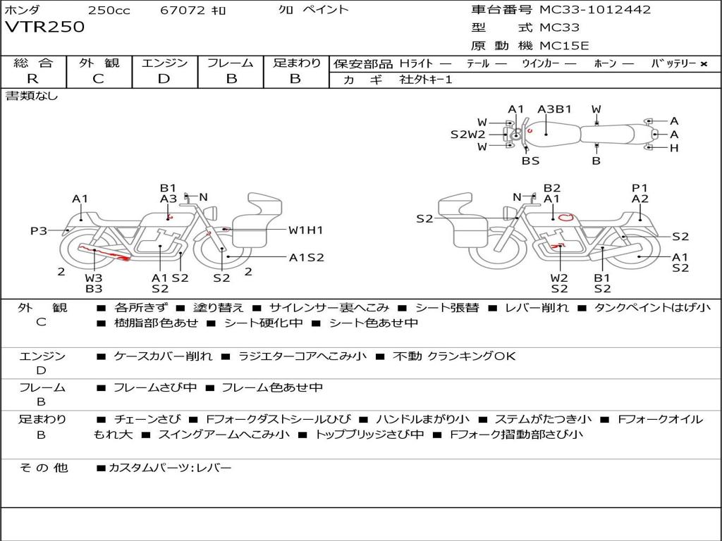 | Номер рамы / VIN | MC33-1012442 |