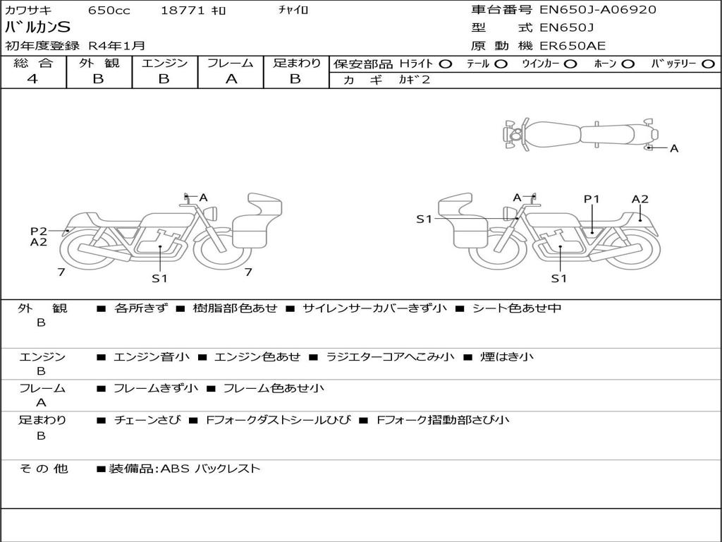 | Номер рамы / VIN | EN650J-A06920 |