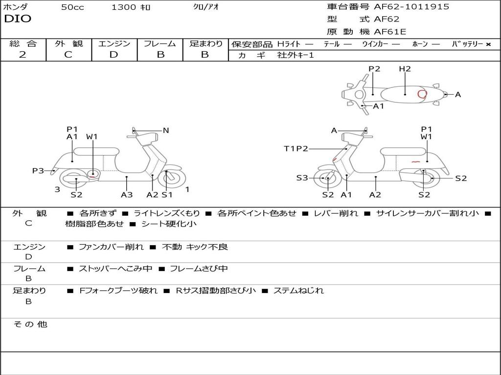 | Номер рамы / VIN | AF62-1011915 |