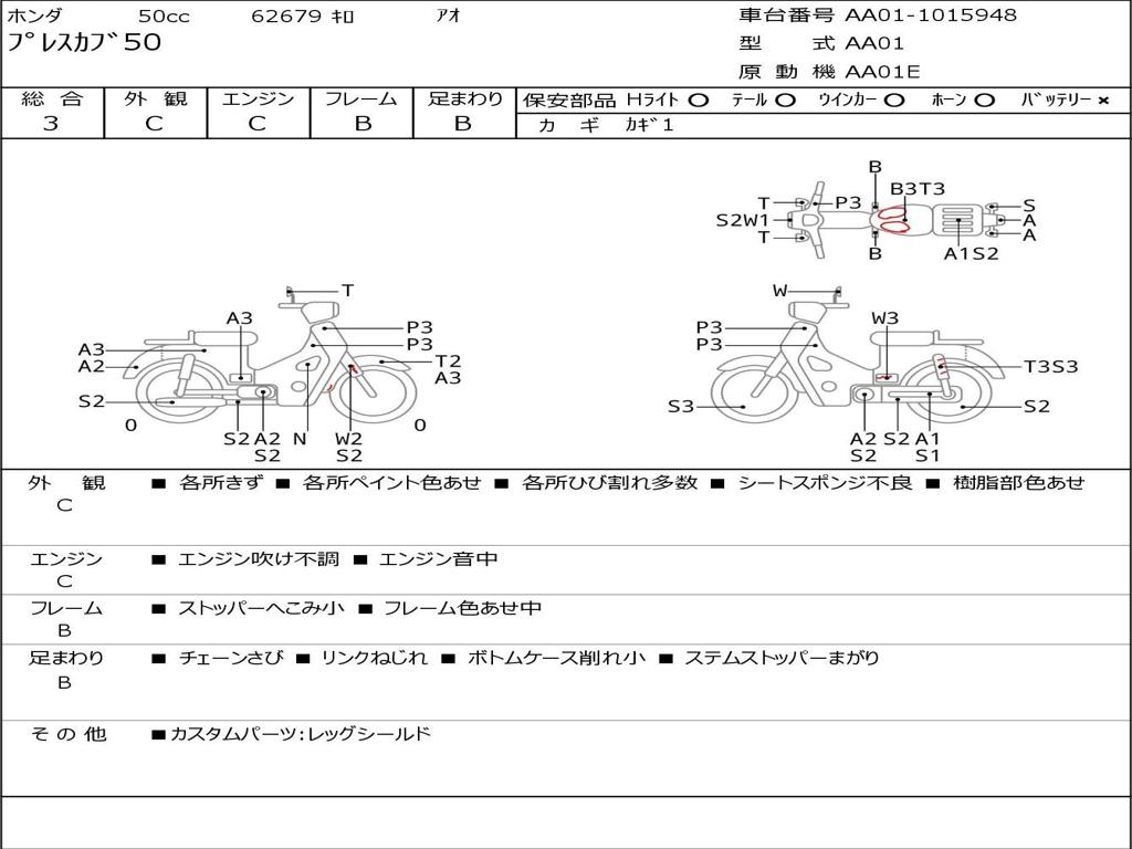 | Номер рамы / VIN | AA01-1015948 |