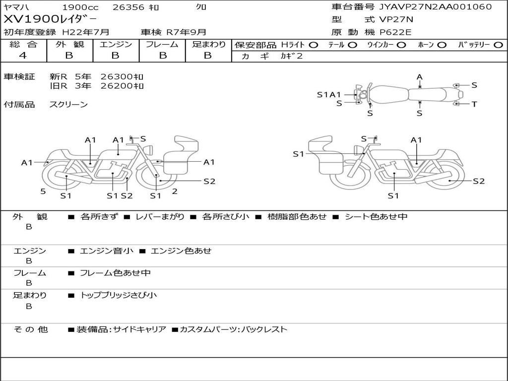| Номер рамы / VIN | JYAVP27N2AA001060 |
