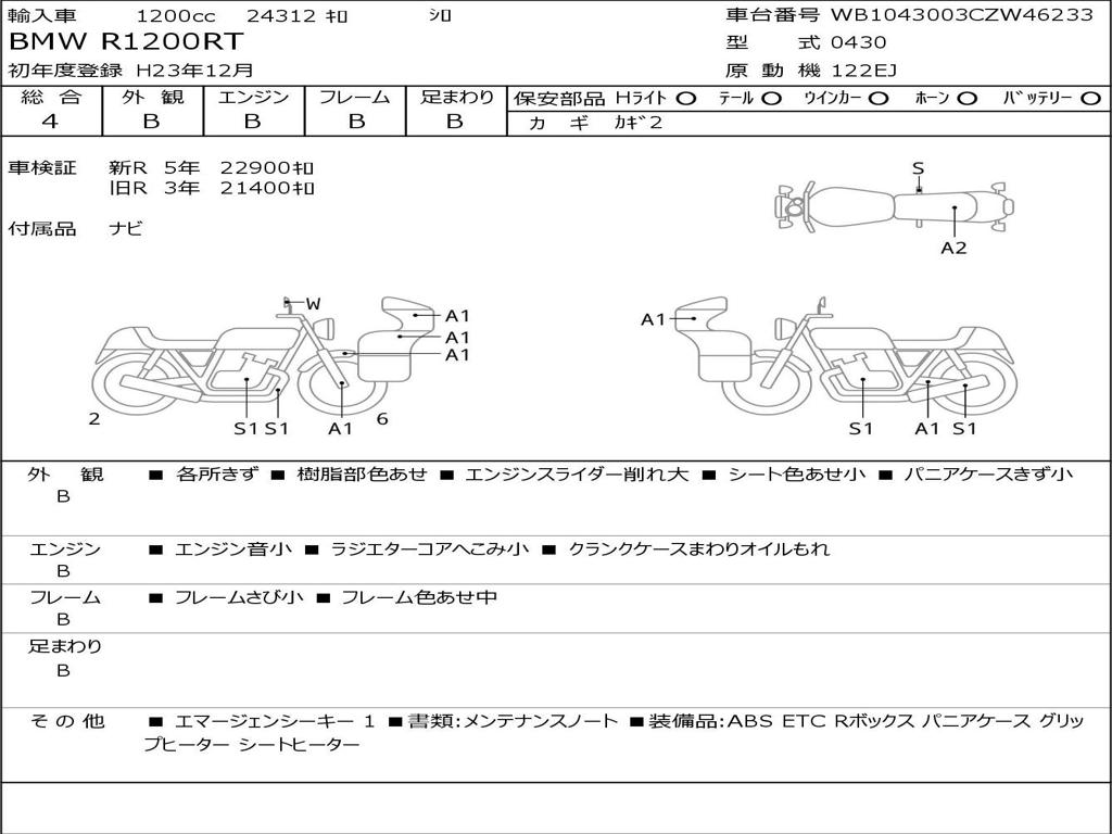 | Номер рамы / VIN | WB1043003CZW46233 |