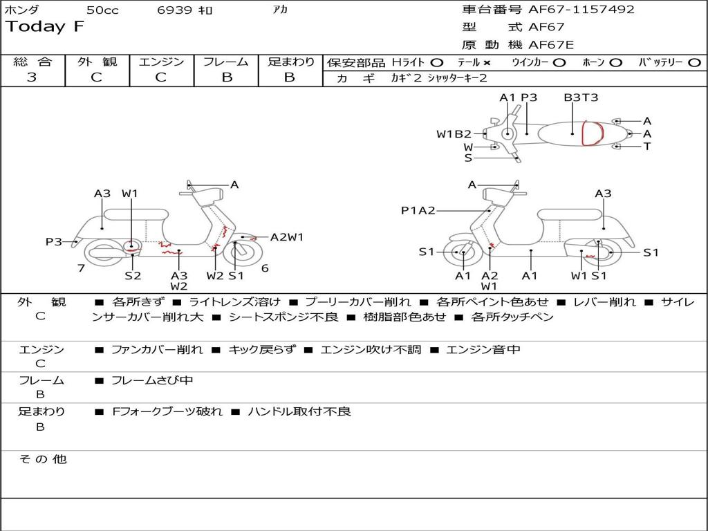 | Номер рамы / VIN | AF67-1157492 |