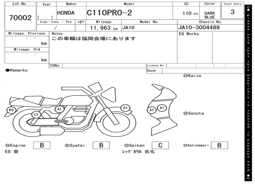 | Номер рамы / VIN | JA10-3004488 |