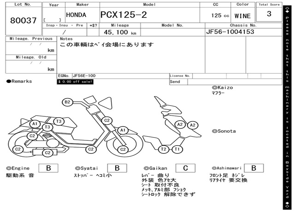 | Аукцион | ARAI BAYSIDE |