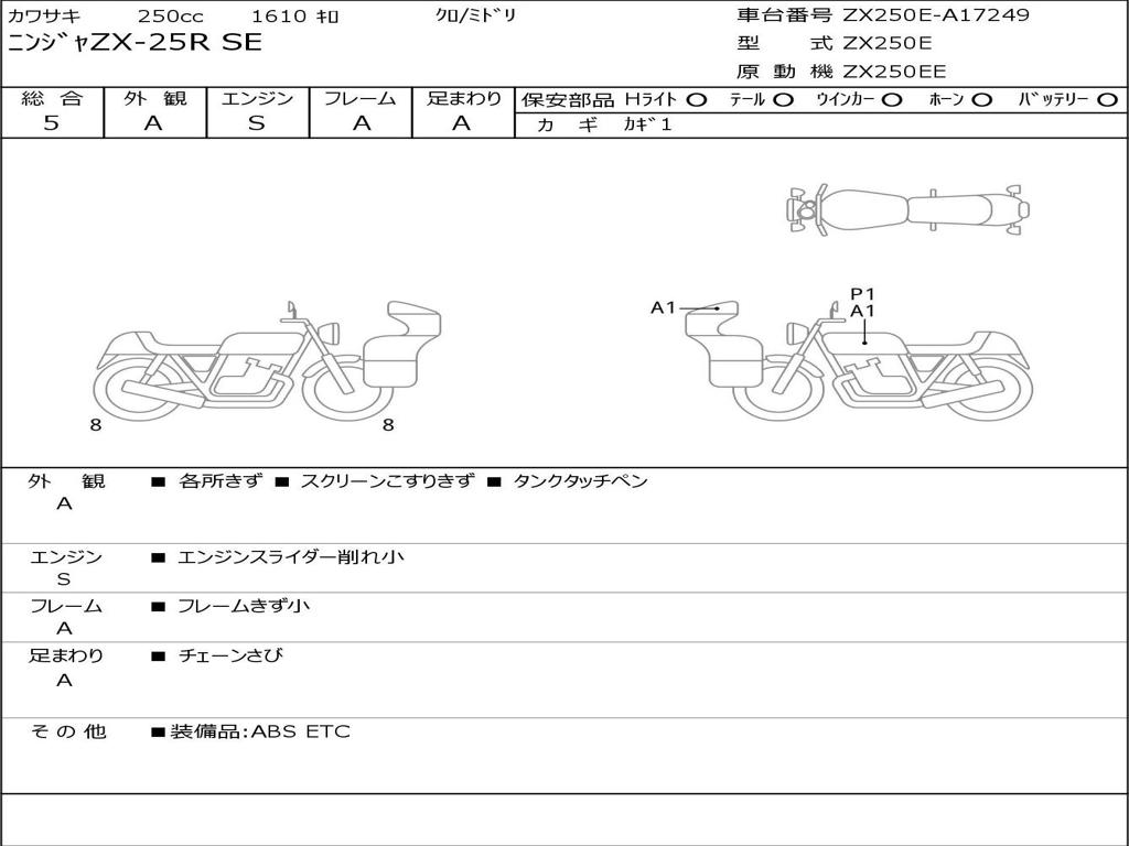 | Номер рамы / VIN | ZX250E-A17249 |