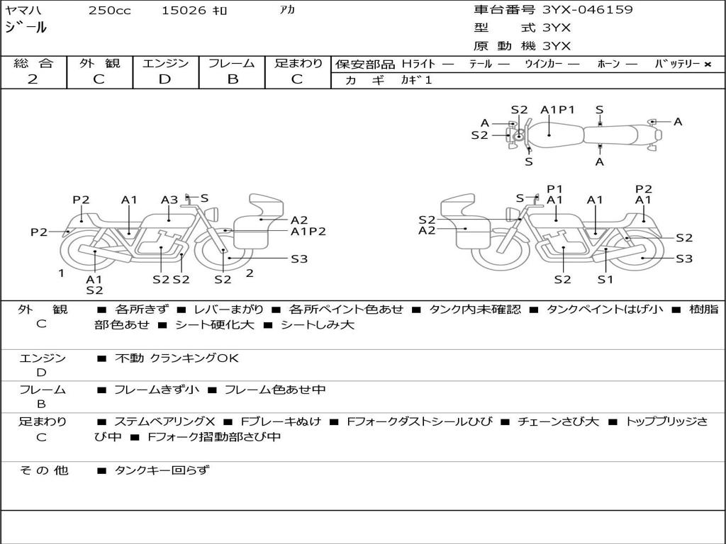 | Номер рамы / VIN | 3YX-046159 |