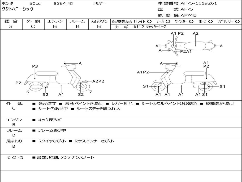 | Номер рамы / VIN | AF75-1019261 |