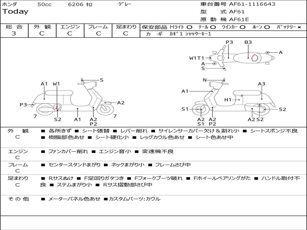 | Номер рамы / VIN | AF61-1116643 |