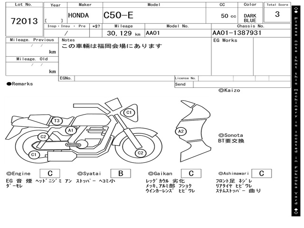 | Номер рамы / VIN | AA01-1387931 |