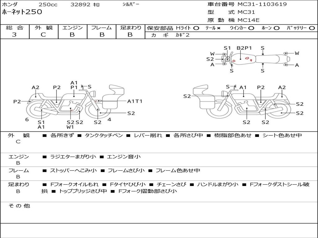 | Номер рамы / VIN | MC31-1103619 |