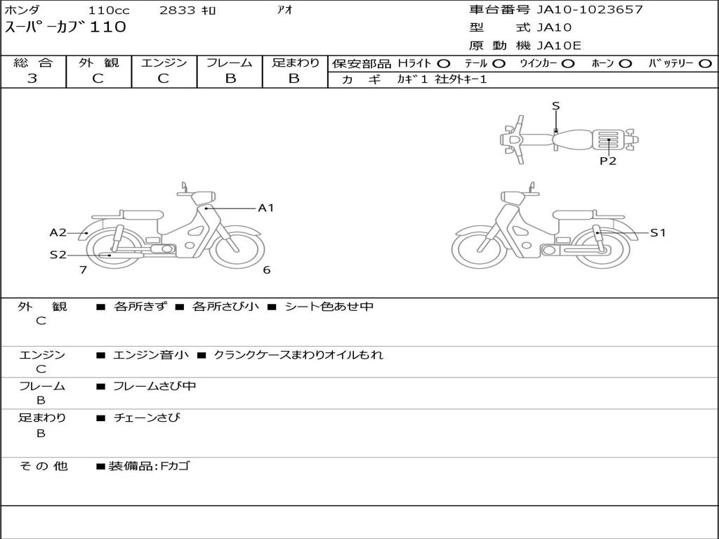 | Номер рамы / VIN | JA10-1023657 |