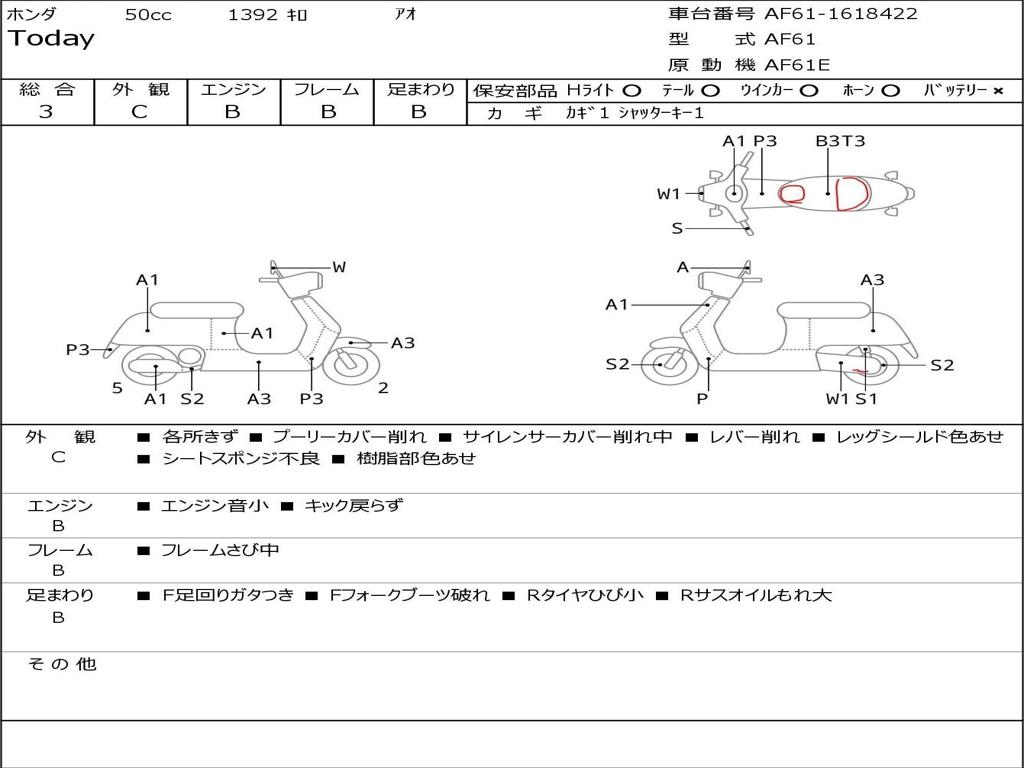 | Номер рамы / VIN | AF61-1618422 |
