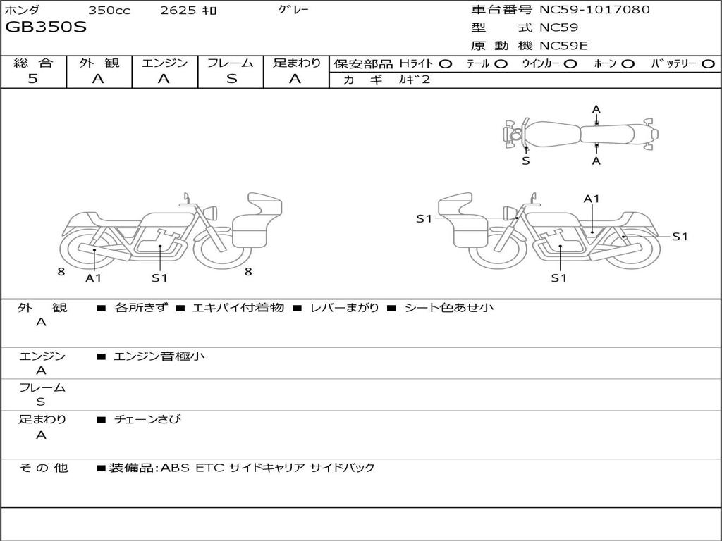 | Номер рамы / VIN | NC59-1017080 |